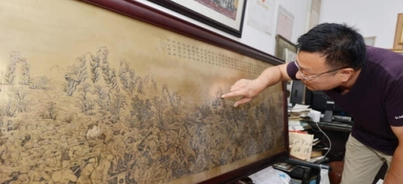 為紀念抗日戰(zhàn)爭暨世界反法西斯戰(zhàn)爭勝利70周年,國家級非物質(zhì)文化遺產(chǎn)“杜氏刻銅”傳承人杜平創(chuàng)作完成了名為《民族魂》的抗戰(zhàn)主題刻銅作品,以此迎接抗戰(zhàn)勝利紀念日的到來。