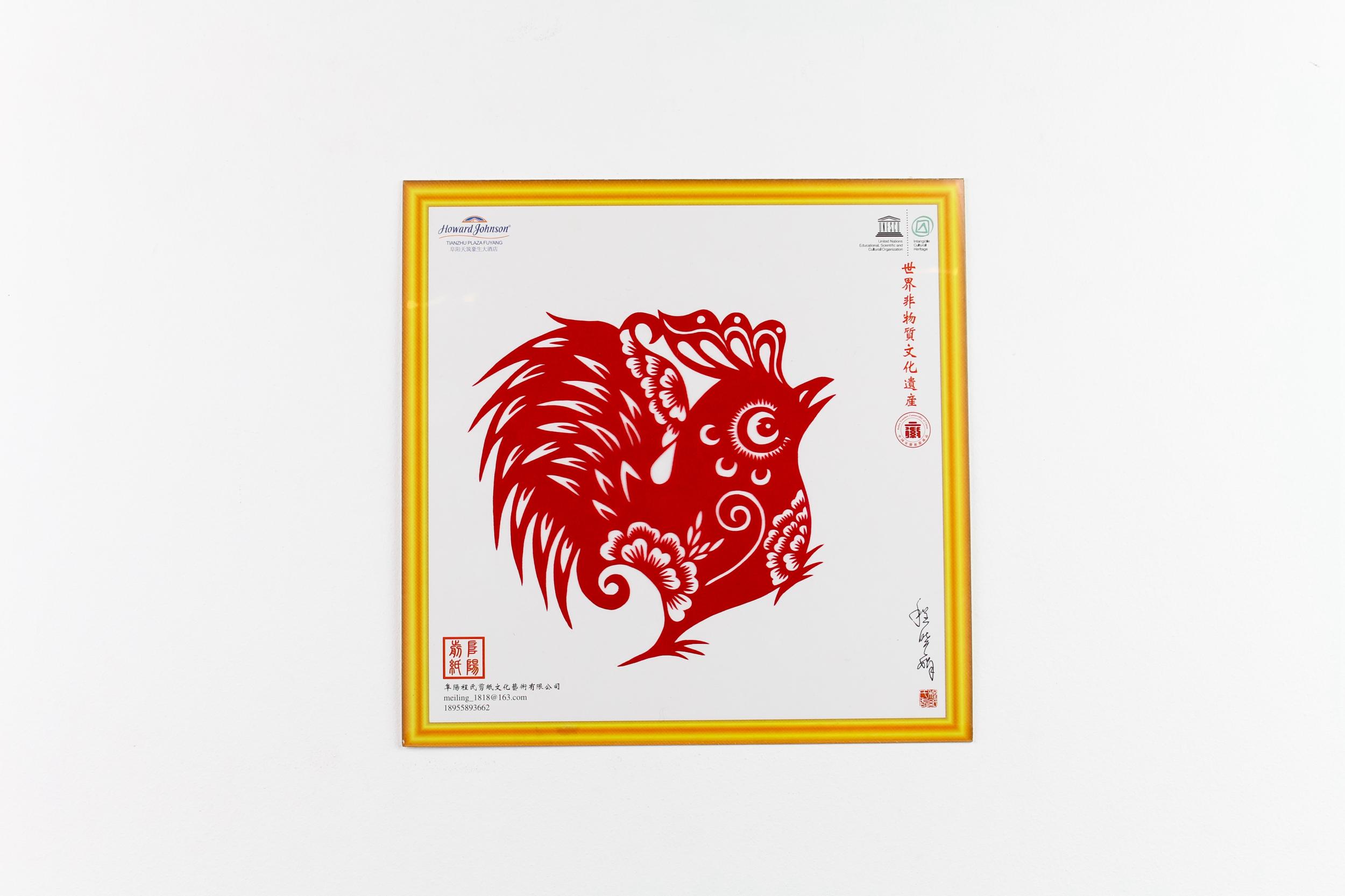 阜陽剪紙,是安徽阜陽一門古老的民間藝術,作品題材豐富喜慶,多以吉祥喜慶、五谷豐登、六畜興旺、年年有魚(余)等民間題材為主。情趣豐富,裝飾味重,兼有南北剪紙的藝術特色,即粗獷之中蘊纖巧,質樸之中見秀麗,剛柔兼?zhèn)?,情趣醇和。其作品有單色、填色和染色等。阜陽剪紙構圖簡潔嚴謹,剪口清晰,立意豐美享有盛譽。