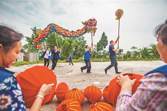 2019年新中國成立七十周年慶典上,周建制作的9條身長60米的巨龍,在天安門廣場中心表演區(qū)騰空飛舞,常舞常新的銅梁龍舞獲得了從未有過的關(guān)注和贊譽。