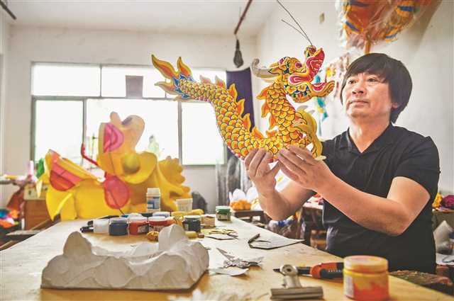 “我是土生土長的坪漆村人,作為龍燈彩扎的非遺傳承人,我想把龍燈彩扎帶回坪漆村,讓村民們學會這門手藝,把產(chǎn)業(yè)做大,增加他們的收入,帶領(lǐng)大家走向共同富裕。”周建在接受記者采訪時說道。